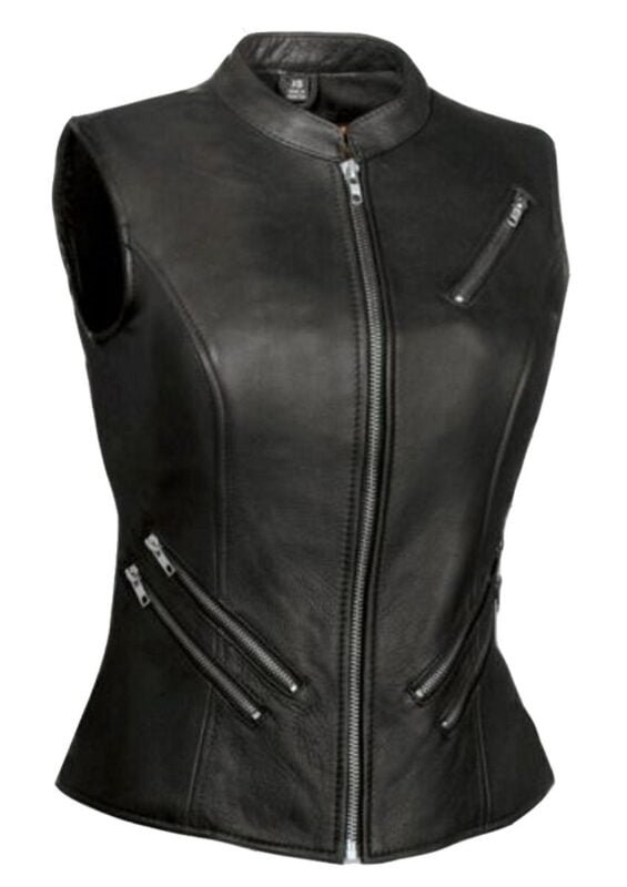 Ladies Leather Vest with Hidden Zipper Closure