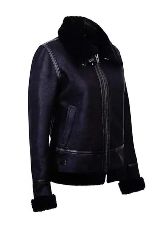 Black Shearling Fur – Black Sheepskin Leather Jacket for Women