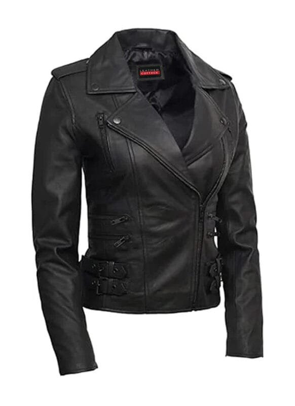 Black Biker Slim Fit Ladies Motorcycle Jacket