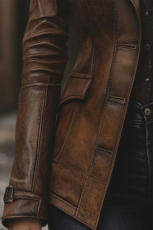 Women’s Vintage Distressed Brown Leather Coat