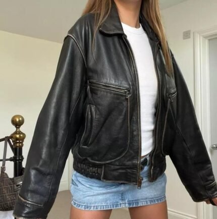 Women’s Black Genuine Sheepskin Bomber Leather Jacket
