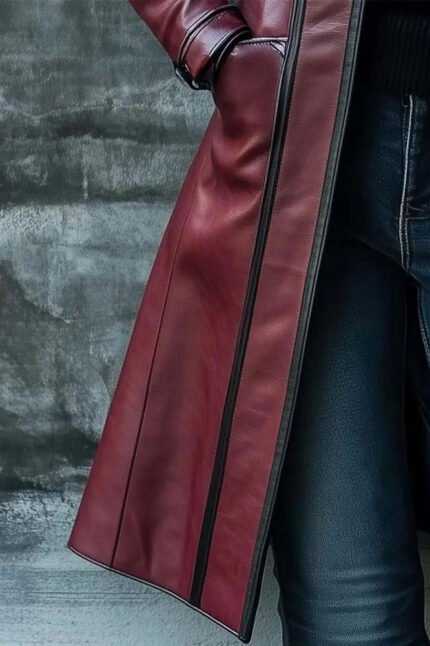 Women’s Burgundy Long Leather Coat