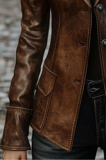 Women’s Vintage Distressed Brown Leather Coat