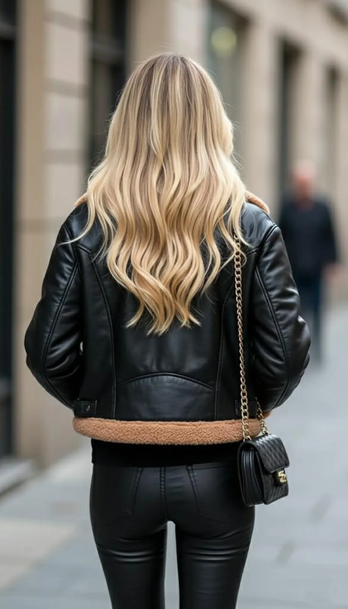 The sleek black color exudes confidence and versatility, making it an essential piece that complements any outfit, whether you’re dressing up for an evening out or layering for a casual day in the city. Its natural lambskin texture gives a supple, buttery feel, while the inner shearling lining provides cozy insulation against cold winds — keeping you stylishly warm through fall and winter.