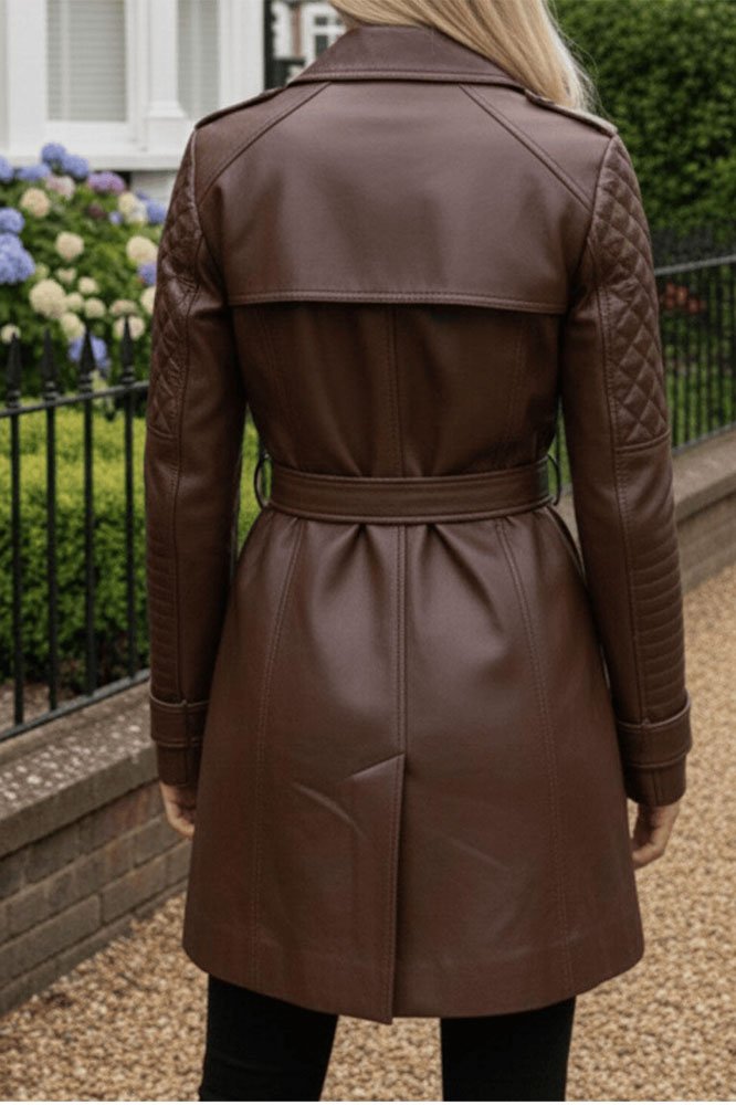 Show your timeless elegance with our Women’s Handmade Brown Leather Trench Coat, a perfect blend of luxury, craftsmanship, and style. Skilled artisans Women’s Handmade Brown Leather Trench Coat, giving it a soft, durable, and premium texture that enhances with every wear. The rich brown tone adds warmth and depth, making it a wardrobe essential for every season.