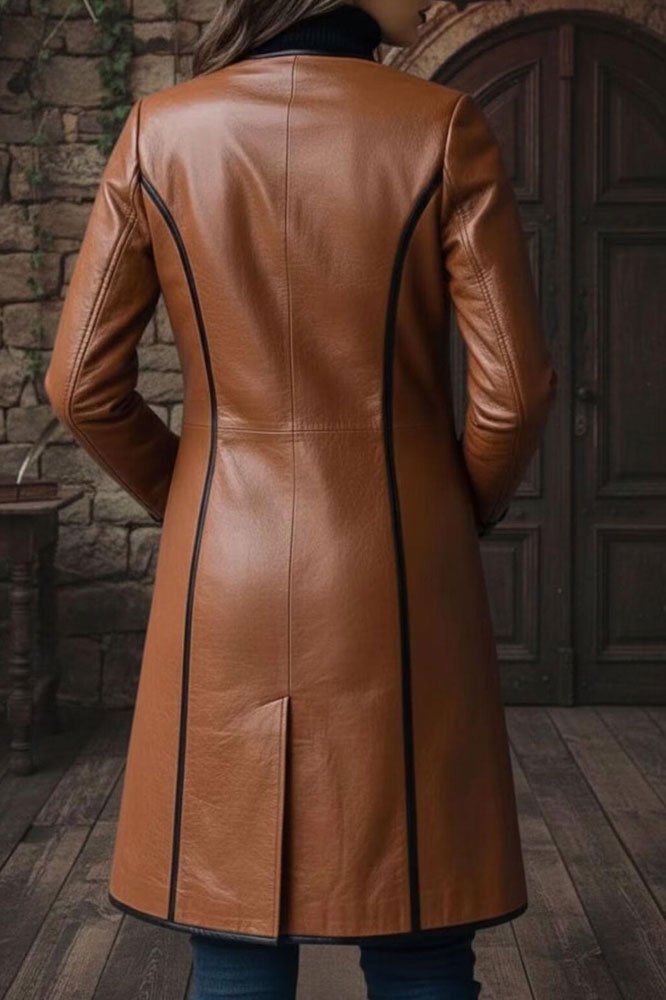 Be the first to review “Women’s Long Genuine Leather Trench Coat”