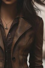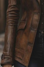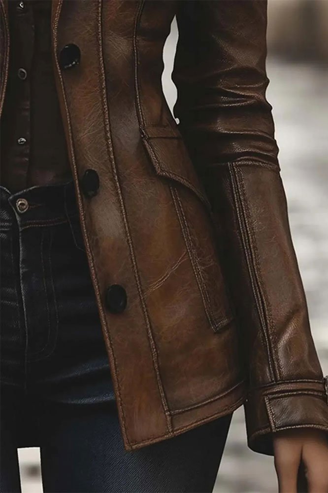 Women’s Vintage Brown Leather coat Featuring a button-front closure, notched lapel collar, and functional side pockets, this coat balances practicality with classic style. The structured design allows easy layering over sweaters, blouses, or dresses, making it a versatile addition to your wardrobe. Each detail, from the precise stitching to the polished hardware, highlights the quality and care put into crafting this timeless piece.